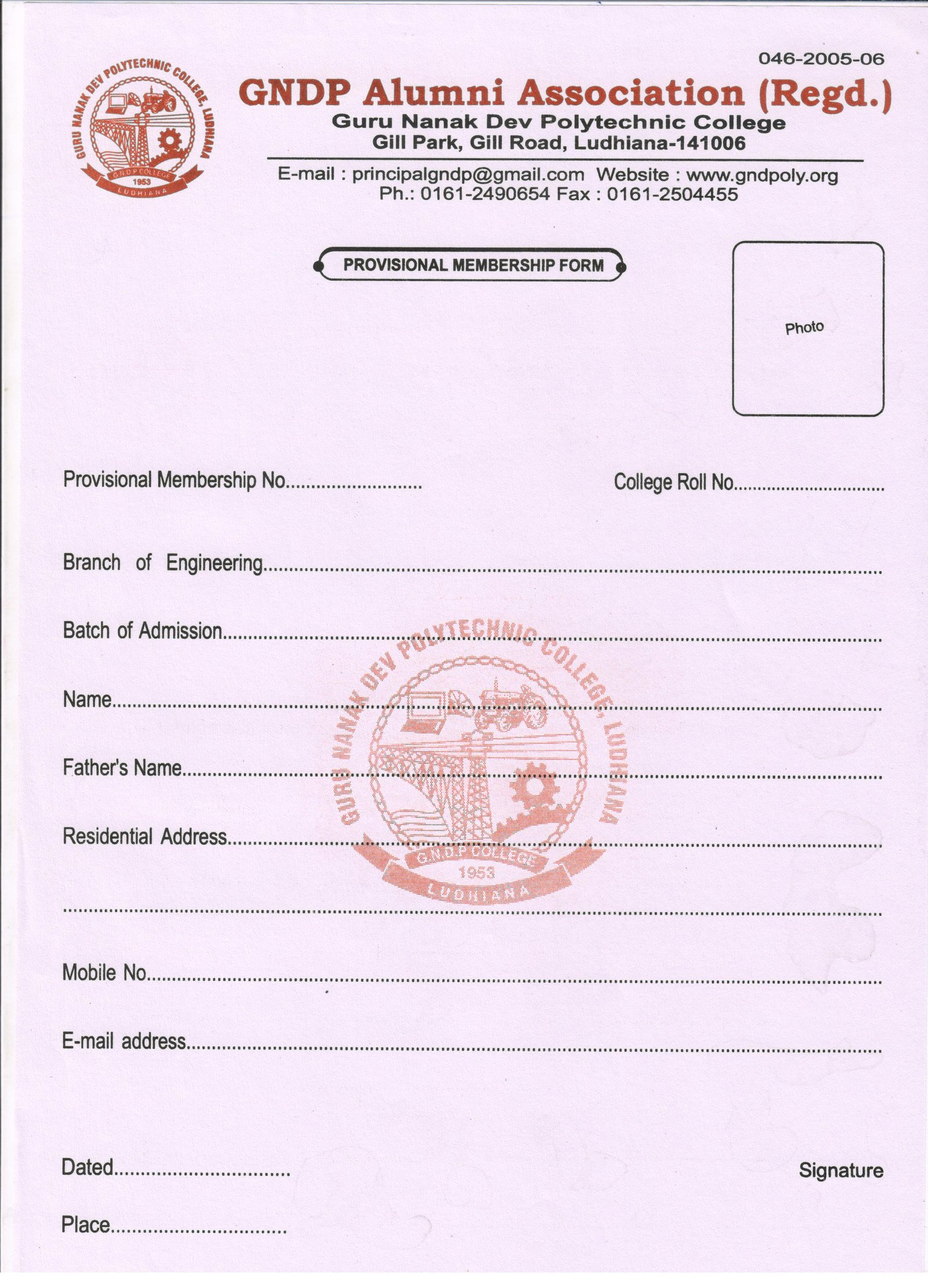 The membership will be open to every honest, sincere and noble person who has qualified Three Year Diploma Course from Guru Nanak Dev Polytechnic College, Gill Park , Ludhiana. Individual seeking life membership shall be required to submit the prescribed Application form together with the admission fee of Rs. 1000/- ( Non-refundable) And subject to revision by Executive Committee. The right to vote is reserved for members only. Serving or retired faculty of GNDPC, Ludhiana.